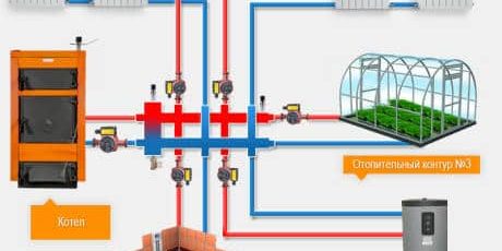 В сложных отопительных системах с одним (или несколькими) котлом, но с несколькими зонами потребления. Допустим, вода в системе распределяется между системой типа «теплый пол», контуром бойлера и несколькими радиаторами отопления. И в этом случае без гидрострелки не обойтись.