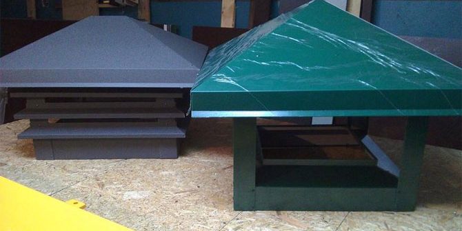 Несмотря на ограниченный срок службы, колпаки рекомендуется изготавливать из прочной оцинкованной листовой стали. Это несложная работа, с которой может справиться любой человек с простым набором инструментов.