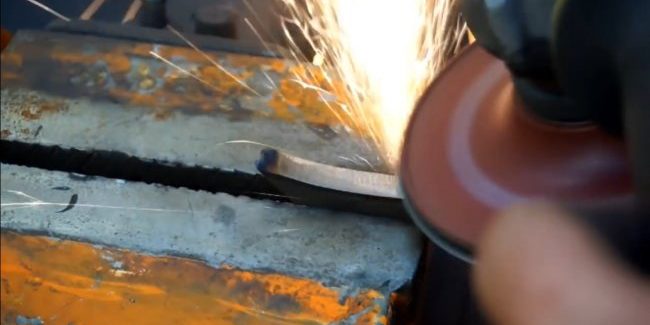 После этого автор отрезает заготовки из металлического уголка нужной длины, и потом тоже приваривает их внутри корпуса печи.