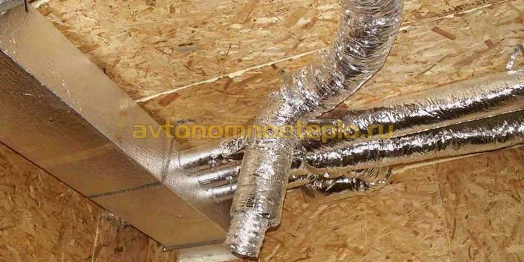 - Обязательная изоляция воздуховодов фольгированной теплоизоляцией. Мера обязательная при монтаже труб в помещении любого типа.