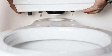 Действительно, эти конструкции несколько отличаются от устаревших унитазов в том плане, что сделаны более технично, включая крепёж крышки. Но в целом принцип остался старый – крышка прижимается гайкой, входящей в комплект клапанного механизма.