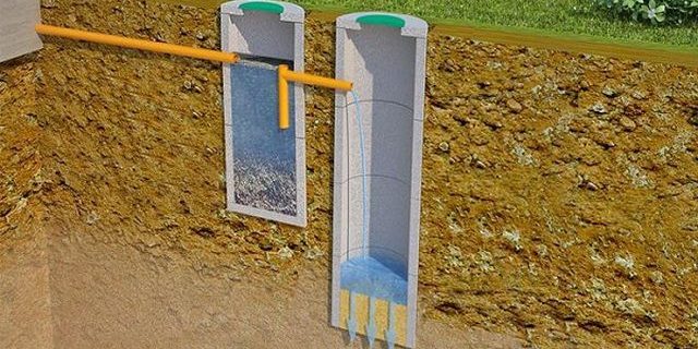 В любом из вариантов первая камера чаще всего имеет герметичное исполнение и служит для сбора, первичной фильтрации и очистки отходов – твердые составляющие оседают на дно, а жидкие осветляются, проходят цикл биологической очистки за счет действия аэробных микроорганизмов. Эта емкость связана со второй камерой специальной переливной трубой – осветленные жидкие отходы перетекают в следующий отсек, который уже организован по принципу дренажного колодца. Вода проходит через дренаж, доочищается и впитывается в грунт.