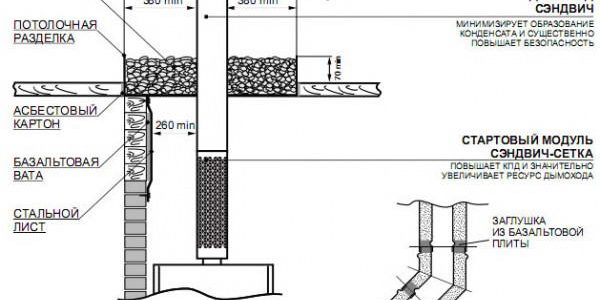 - Сэндвич-дымоход из нержавеющей стали. Требования газовой службы допускают использование сэндвич-систем, устройство которых отличается от одноконтурным тем, что каждая труба состоит из 2 слоев стали и 1 слоя изолирующего материала между ними. Этот вариант подходит, если используется наружная или внутренняя схема монтажа.