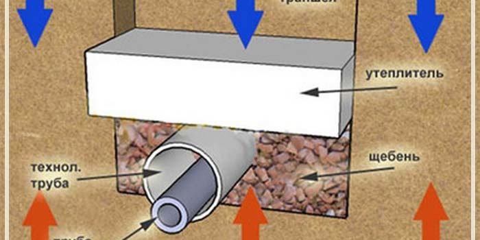 Для этого на дне канавы из кирпича или других строительных материалов выкладывается желоб, куда помещается водопровод обернутый в специальную строительную теплоизоляцию.