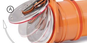 Данная разновидность канализационных клапанов обладает подпружиненной мембраной (она называется тарелкой из-за круглой формы). В случае, когда сточные воды перемещаются в верном направлении, тарелка поворачивается и уходит вверх, не препятствуя движению жидкостей.