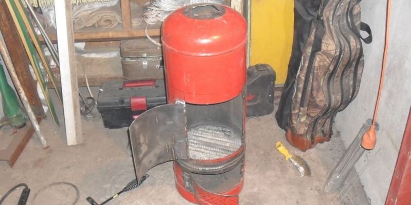 - Труба с перфорацией устанавливается в центр днища и фиксируется сваркой. Далее изготавливается крышка с центральным отверстием с диаметром, равным диаметру трубы (крышка устанавливается на трубу). Дополнительно вырезается краевое отверстие для усиления тяги, на которое устанавливается заслонка. Крышка для трубы оснащается дужками для удобства эксплуатации.