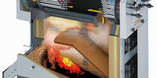 Принцип, по которому работают котлы на опилках, простой. Сжигание сырья осуществляется при помощи контролируемого длительного горения, трехступенчатой подачи атмосферного воздуха и вторичного дожига продуктов сгорания. При этом топливо проходит несколько стадий: