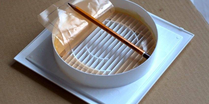 - По краям выпиленной пластины необходимо просверлить отверстия, при помощи которых она будет соединяться с вентилятором и фиксироваться в вытяжном канале. Кроме того, отверстия надо просверлить и в центральной части пластины. Это нужно для того, чтобы через нее мог свободно проходить воздух. От того, насколько много отверстий вы просверлите в такой пластине, будет зависеть пропускная способность вашей вентиляционной системы.