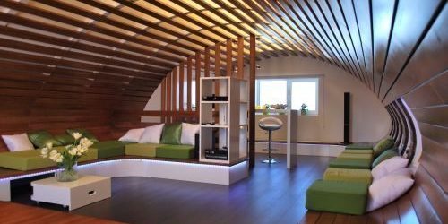 Мансарды, обустроенные под жилое помещение или комнату досуга, получили широкое распространение в коттеджных городках и при загородном строительстве. Это модное течение пришло к нам из Европы, где уже оценили уют и функциональность подкрышного пространства.