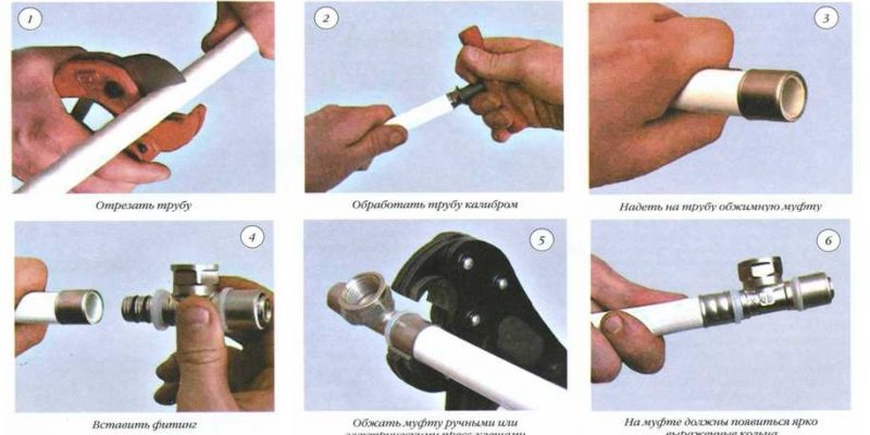 Гибкие полиэтиленовые трубы соединяют пластиковыми фитингами различной конфигурации. Они имеют уплотнительные кольца и гайки, которые закручиваются от руки. На трубу надевается гайка, уплотнитель, она вводится внутрь фитинга до упора, затем соединение фиксируется.