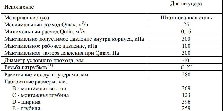 | Максимально допустимое давление | 100 кПа |