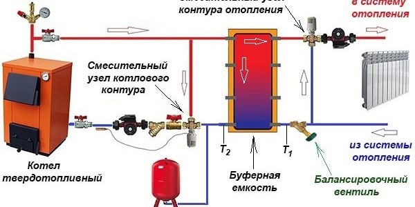 Обвязка твердотопливного котла и буферной емкости
